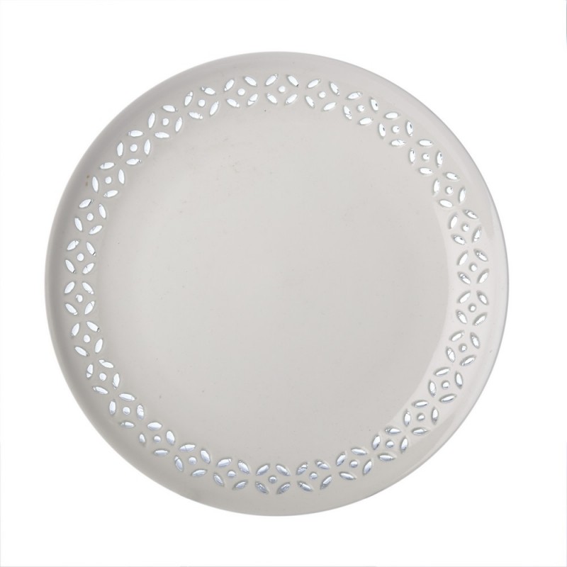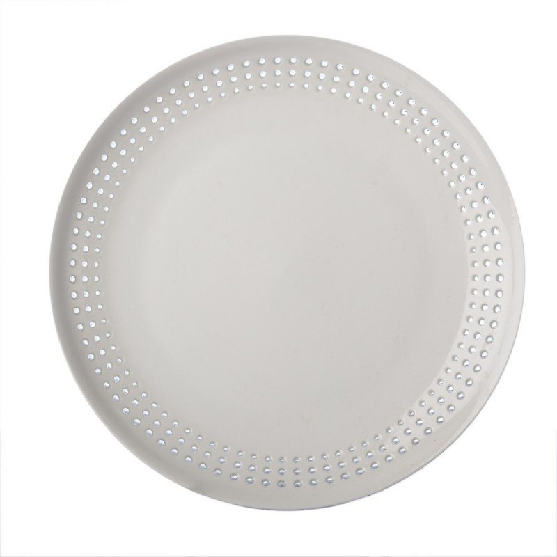 Porcelaine émaillée percée, les trous sont comblés par une résine transparente émaillée.