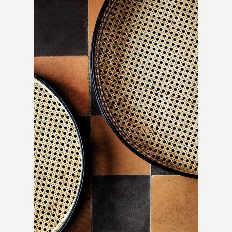Bois contre-plaqué noir, rotin naturel, métal noir