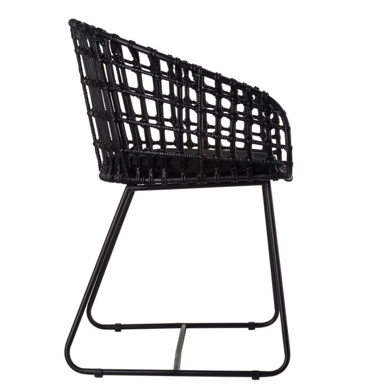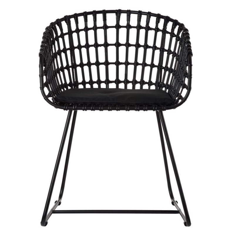 Rotin noir, métal noir, coussin fourni