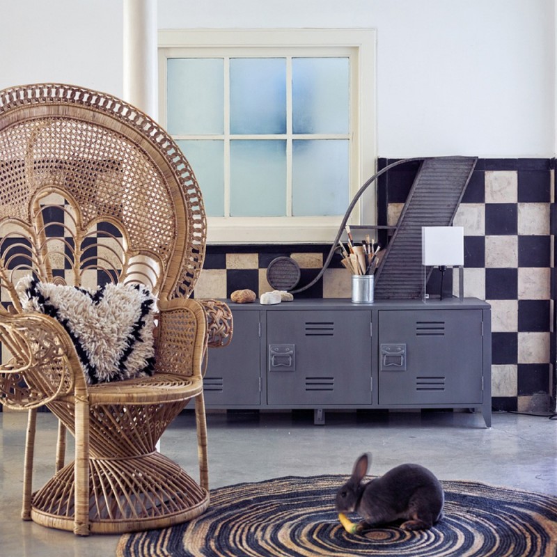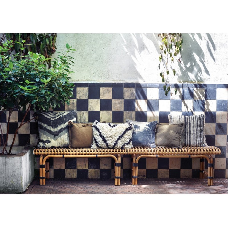 Coussin rectangulaire à poil long fourrure blanc noir HK Living