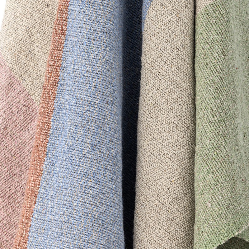 Fabriqué en coton recyclé, il présente de délicates rayures dans des tons clairs et pastel, apportant une touche de douceur à n’importe quelle pièce.