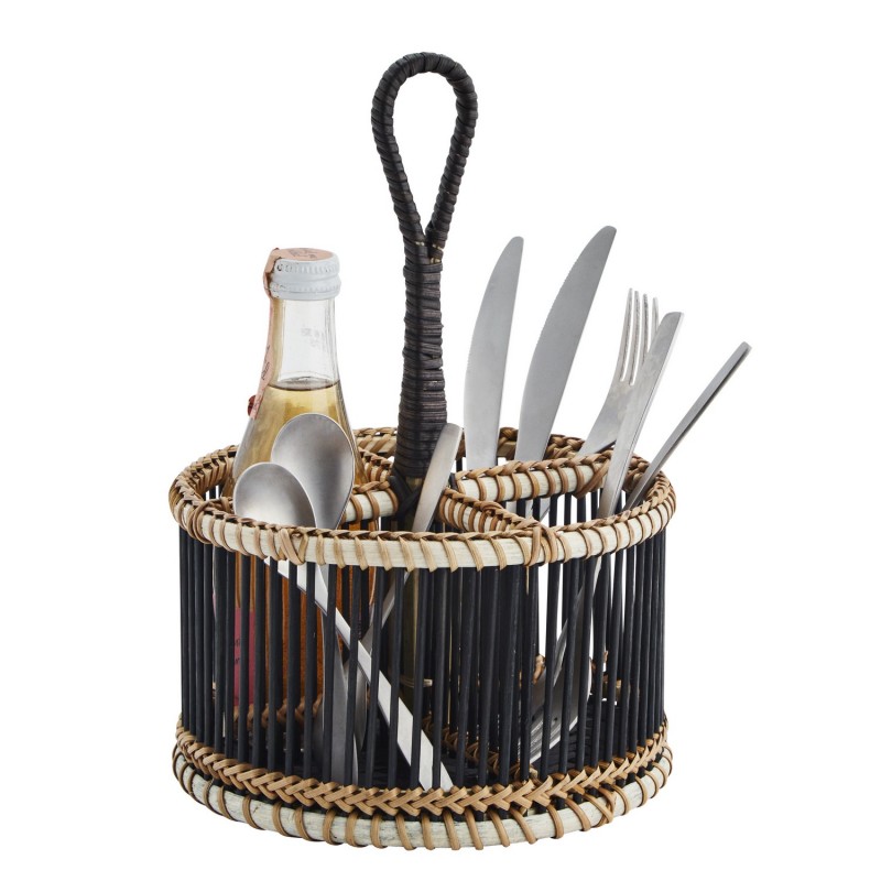 Apportez une touche de charme élégant à votre cuisine avec le range-couverts vertical en bambou noir de Madam Stoltz.