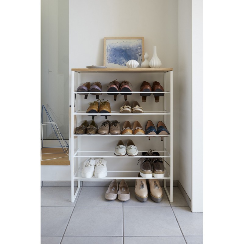Découvrez Tower de Yamazaki : l’étagère à chaussures au design épuré qui allie acier robuste et bois raffiné.