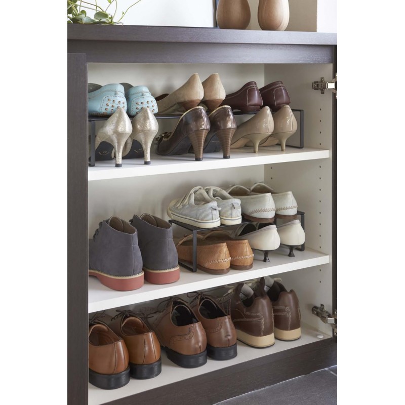 L'étagère à chaussures extensible Frame de Yamazaki se distingue par son ingéniosité : elle s'adapte facilement à l'espace disponible, vous permettant de maximiser votre rangement.