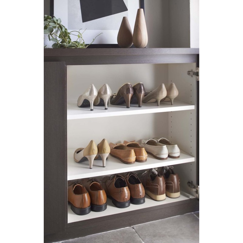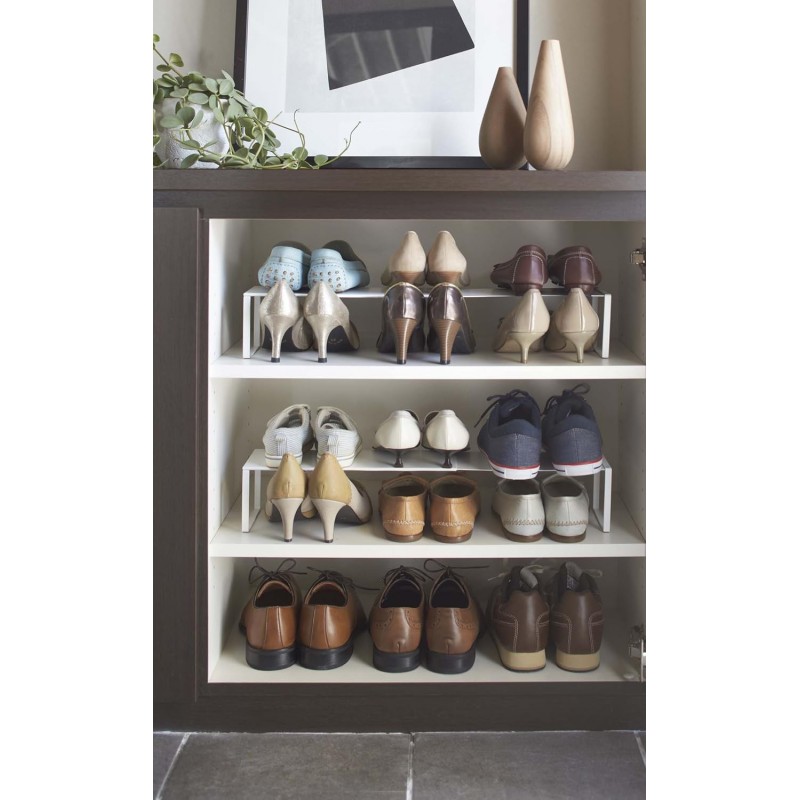 L'étagère à chaussures extensible Frame de Yamazaki se distingue par son ingéniosité : elle s'adapte facilement à l'espace disponible, vous permettant de maximiser votre rangement.