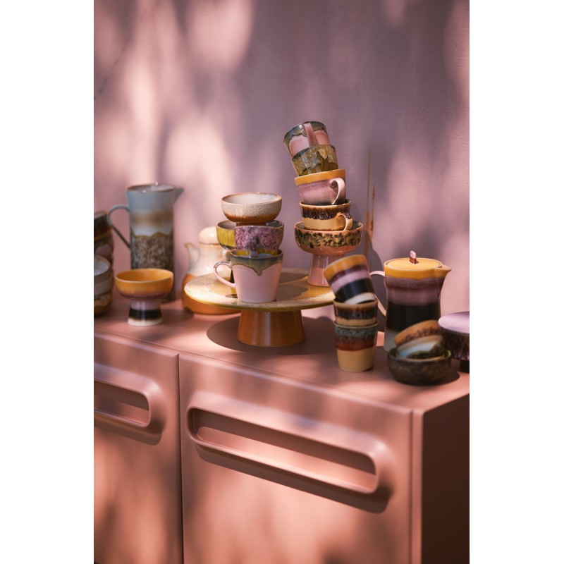 Inspirée de la célèbre collection de céramiques des années 70 de HKliving, cette série se distingue par ses nouvelles couleurs vibrantes, ses finitions brutes et son design audacieux.