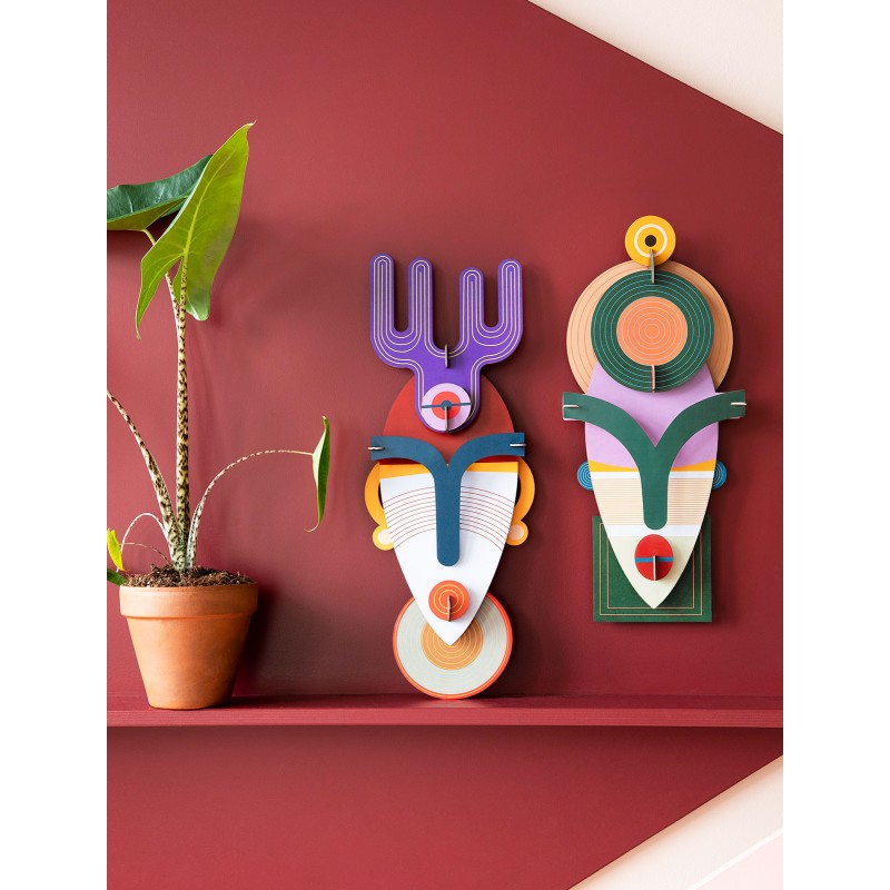 Studio Roof revisite la décoration murale en apportant de la joie et de l'audace. Choisissez le ou les masques qui vous ressemblent, construisez vos trophées et exposez les fièrement chez vous.