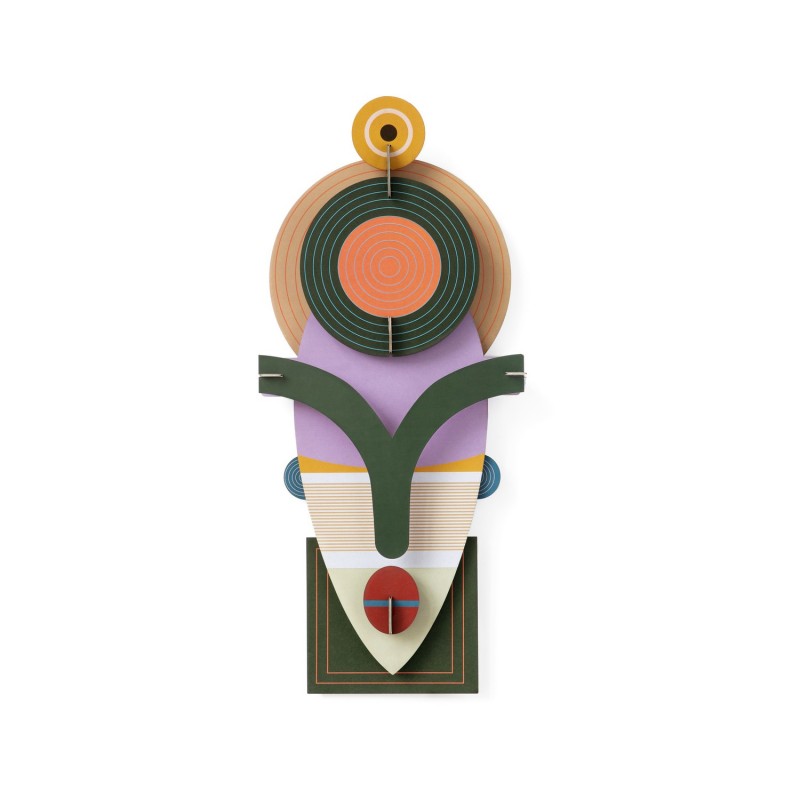 La maison Néerlandaise Studio Roof réinvente les masques ethniques de manière contemporaine avec cette collection unique, réalisée en carton recyclé et imprimée avec des encres végétales.