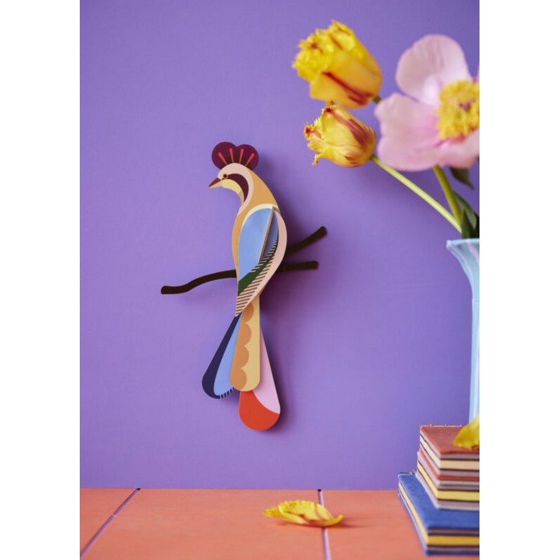 Inspirée par la beauté des oiseaux exotiques, cette œuvre à assembler soi-même révèle un univers flamboyant, entre rêve tropical et design écoresponsable.