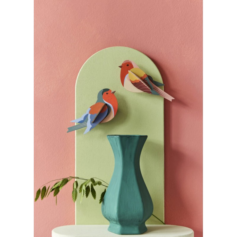 Avec leurs teintes éclatantes et leurs silhouettes stylisées, les Robins de Studio Roof insufflent couleur, mouvement et légèreté à vos murs.