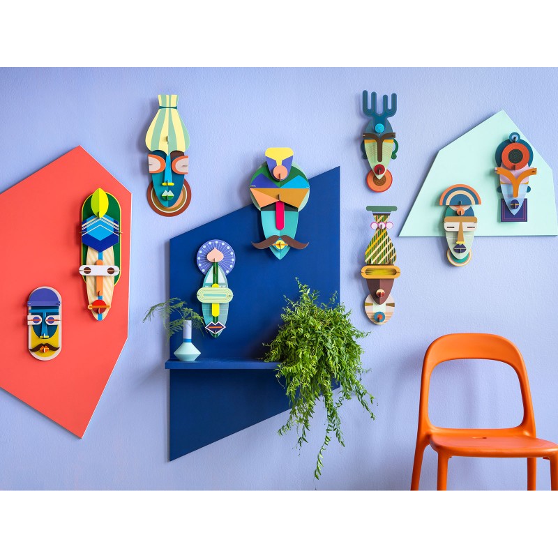 Studio Roof revisite la décoration murale en apportant de la joie et de l'audace. Choisissez le ou les masques qui vous ressemblent, construisez vos trophées et exposez les fièrement chez vous.