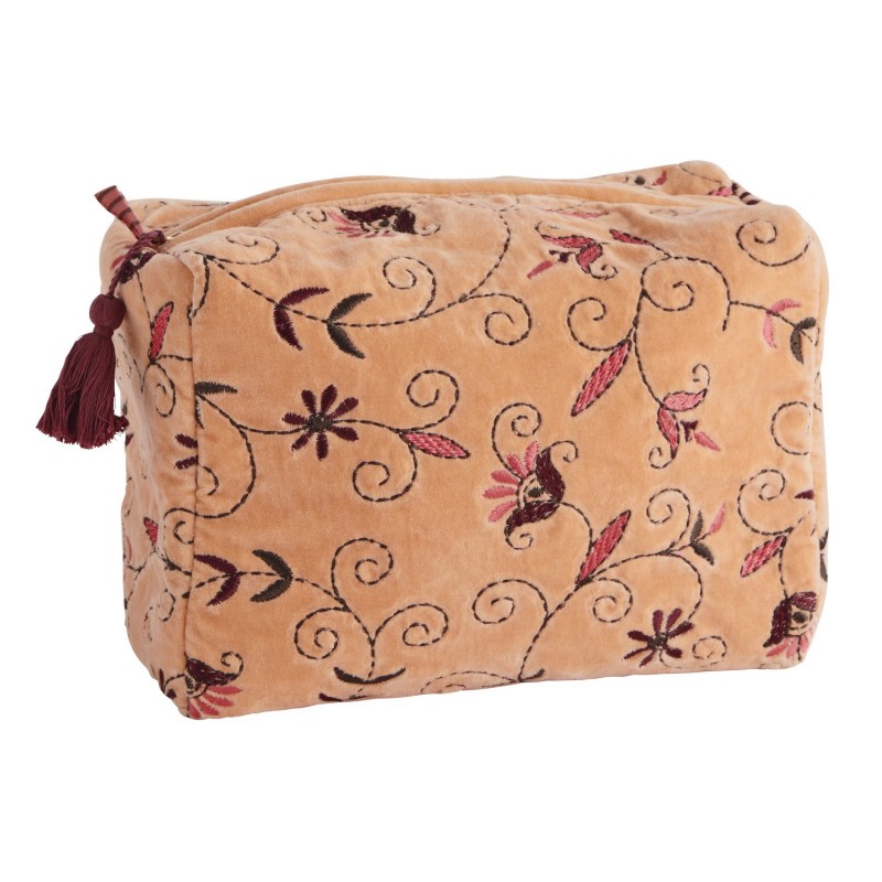 Trousse de Toilette Velours Brodé Madam Stoltz: Artisanat et Solidarité