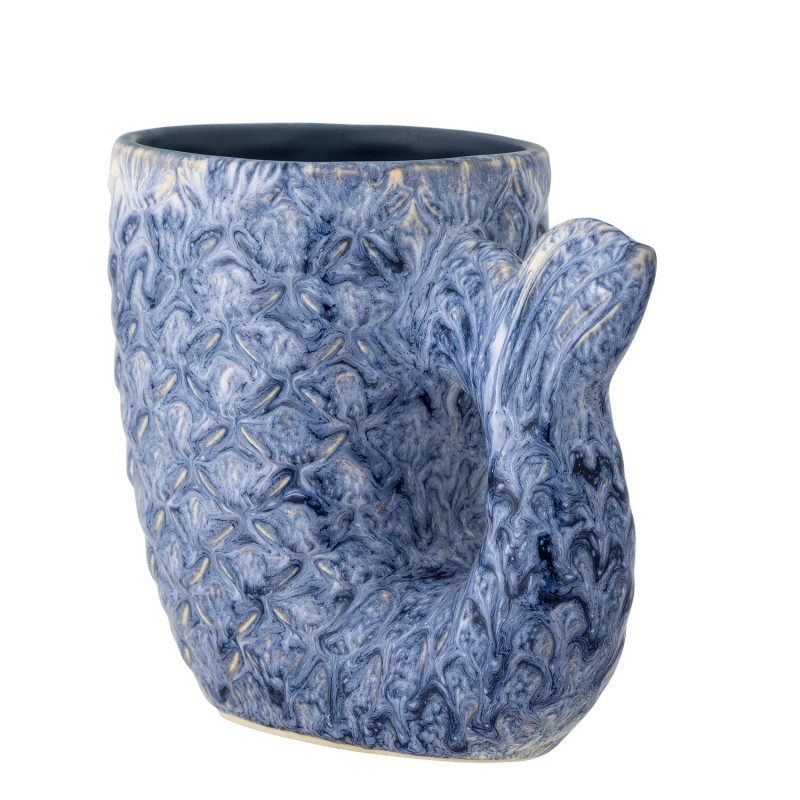 Ce vase en grès émaillé à la main séduit par sa forme de poisson stylisée et sa superbe teinte bleue, profonde et changeante.