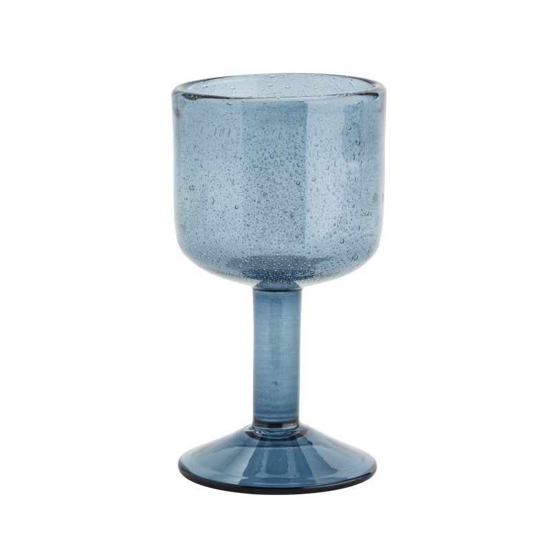 Ajoutez une touche de poésie à votre table avec ce verre à pied bullé couleur bleu signé Madam Stoltz. Ses bulles délicatement incrustées dans un verre épais jouent avec la lumière, offrant un éclat subtil entre fantaisie et raffinement.
