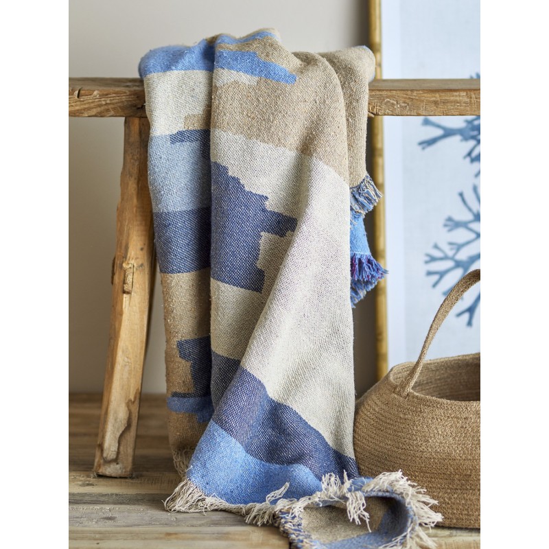 plaid coton recycle design bleu bloomingville maji