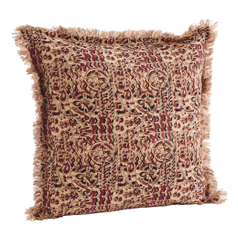 madam stoltz housse coussin vintage coton imprime rose nude franges