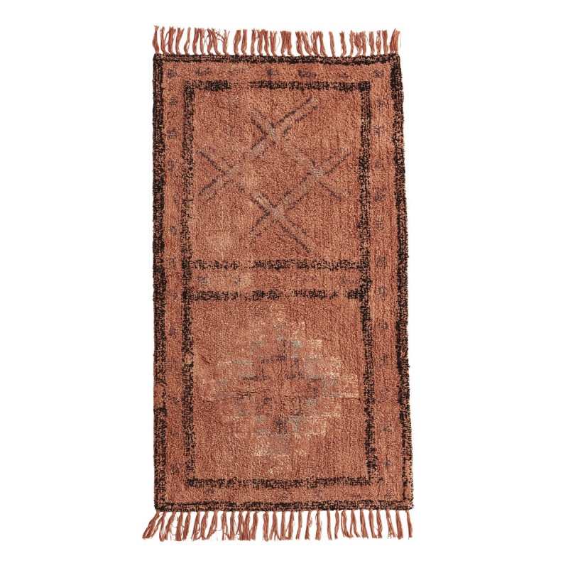 madam stoltz tapis tufte orange franges motif ethnique 70 x 140 cm