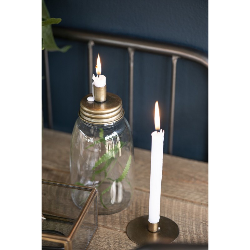 bougeoir rond plat disque metal dore laiton
