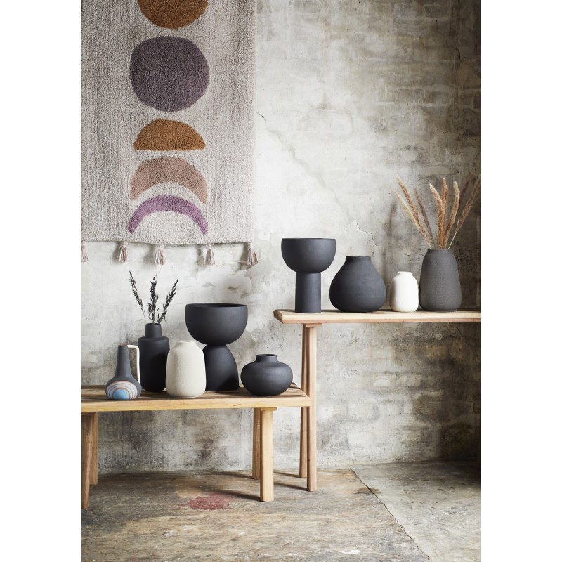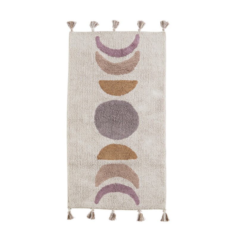 madam stoltz tapis tufte moelleux blanc ecru motif colore pompons