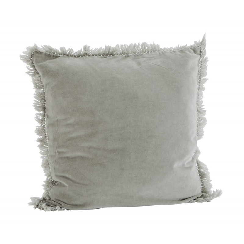 madam stoltz housse de coussin carree velours gris franges 50 x 50 cm