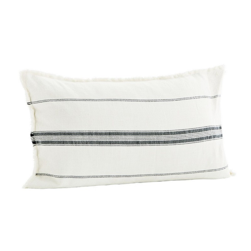 madam stoltz grande housse de coussin coton blanc fine rayures noir