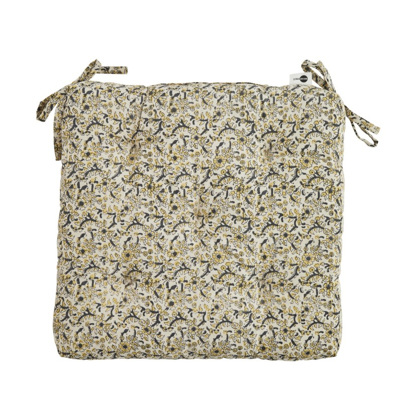 galette coussin de chaise double face imprime jaune fleuri madam stoltz