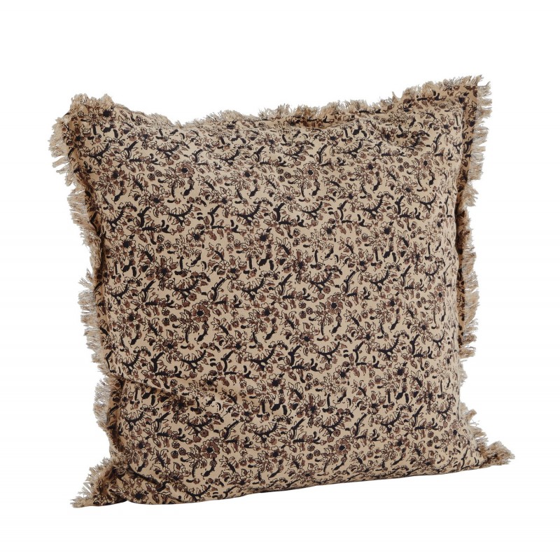 madam stoltz coussin imprime petites fleurs beige marron brun noir