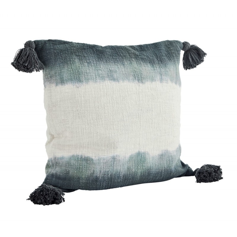 grand coussin tie and dye bleu blanc coton pompons madam stoltz