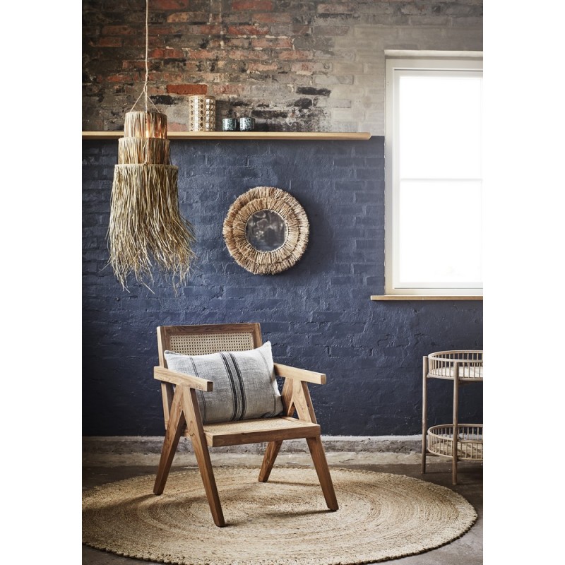 madam stoltz housse de coussin rectangulaire raye lin beige noir