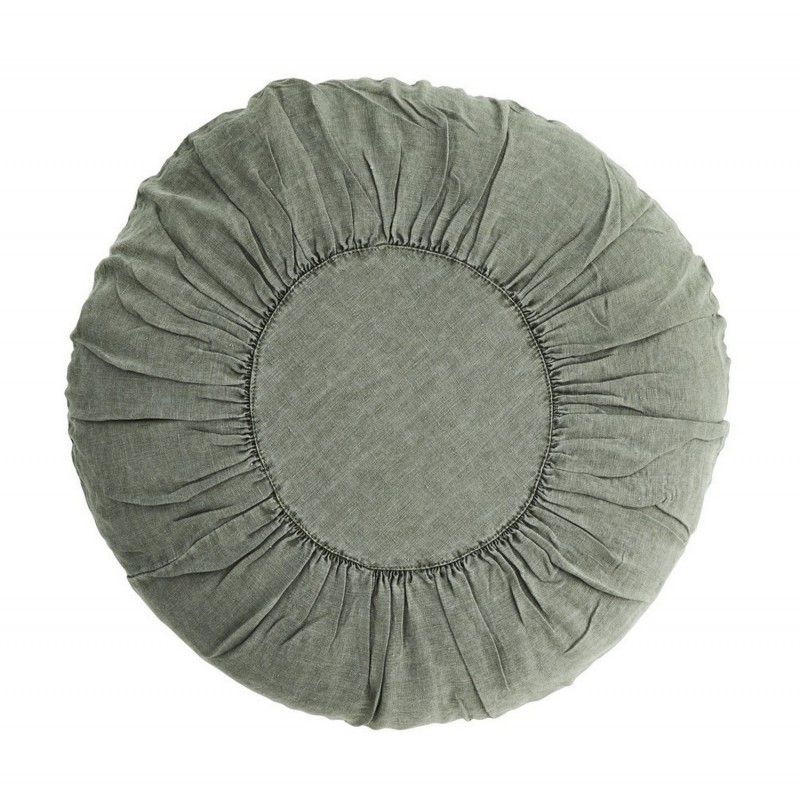 coussin rond taille xl lin plisse madam stoltz vert jade d 60 cm